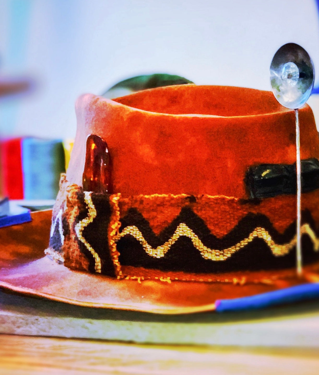 I make quality handmade hats that stand out as unique sculptural wearable art. Every hat is made with the finest materials and no two hats are ever created the same. I brand and burn symbols and images that inspire the mythology of the person wearing the hat. Using handmade objects made with precious metals and other symbolic talisman that match the theme that is then weaved into the millinery concept. I’m focused on creating designs that start trends and influence the way we view headwear.